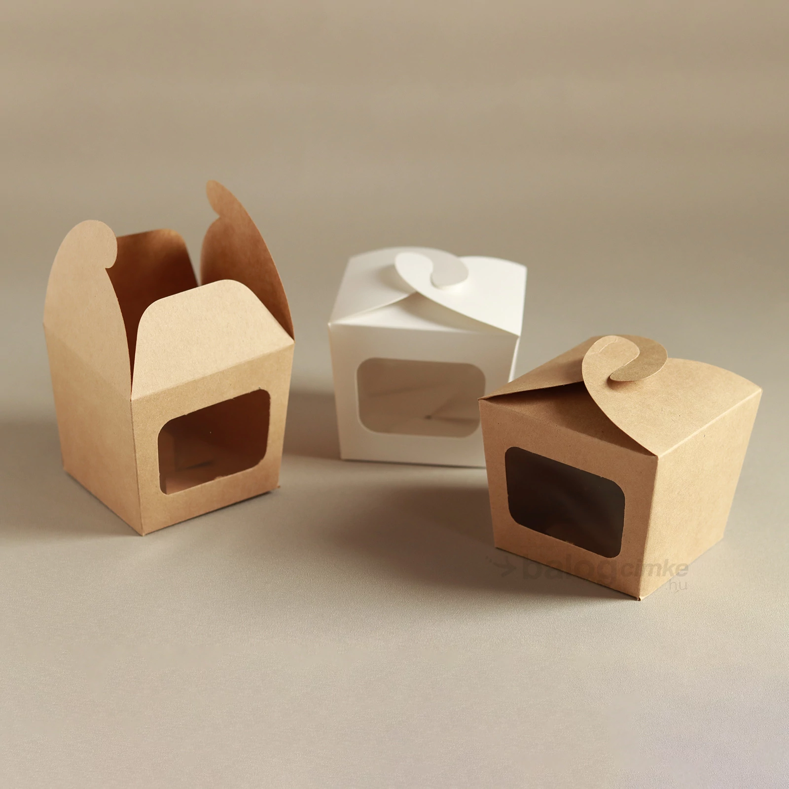 Ablakos doboz fehér vagy barna színben. Elején fóliás ablakkal, teteje önzáródó.